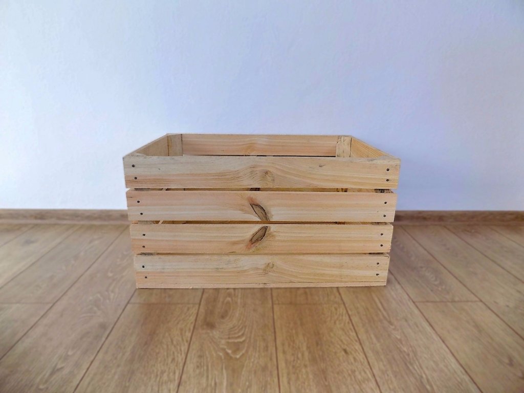 Klasická přírodní dřevěná bedýnka, která jen trochu přerostla. Nejen, že se do ní vejde více dřeva u krbu, ovoce z nákupu nebo knížek při stěhování, ale také už je to adept na krásný noční stolek nebo velkou poličku.