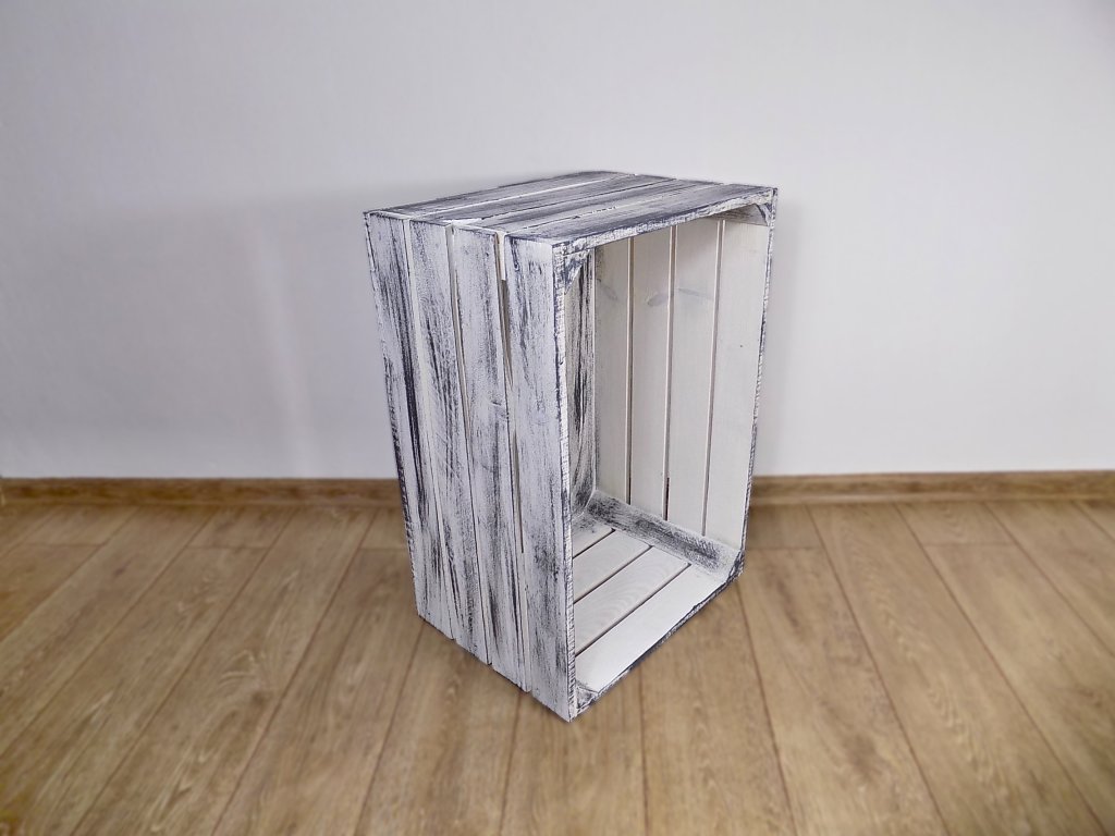 Dřevěná bedýnka 60X40X30 ŠEDO BÍLÁ PATINA