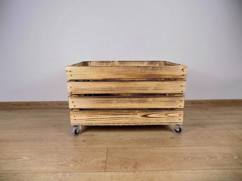 Bedýnka na kolečkách připravená pojmout hračky, ovoce, nářadí...prostě na co si vzpomenete. Je silná jako tur a proto unese pořádný náklad (do 30kg). Dvě kolečka jsou vybaveny brzdným systémem, takže není problém bedýnku zastavit. Na přání rádi umístíme kolečka na jinou stranu. Může Vám tak vzniknout třeba i i pojízdná knihovnička, či kuchyňská skřínka.